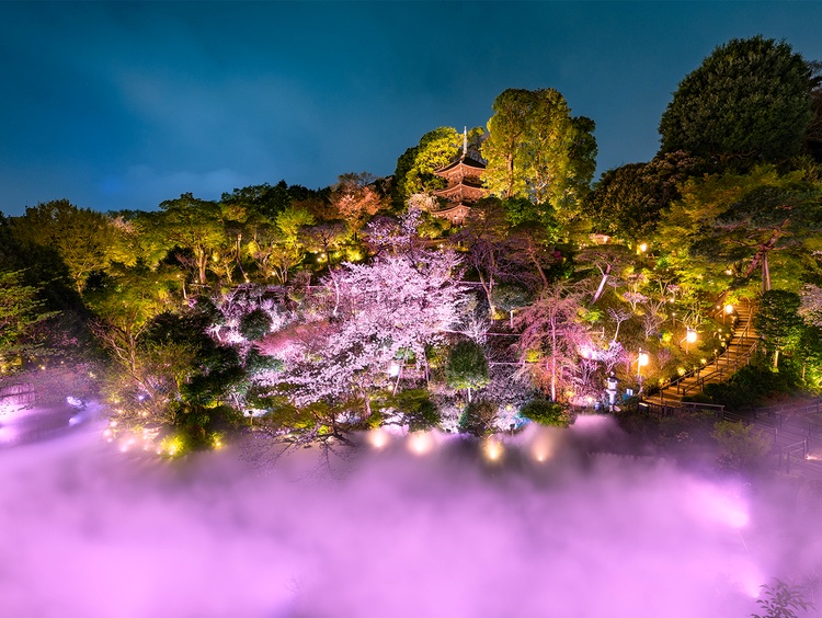 お食事の後は庭園で、桜色に染まる「夜桜雲海」など、夜ならではの幻想的な景色をご体感ください。